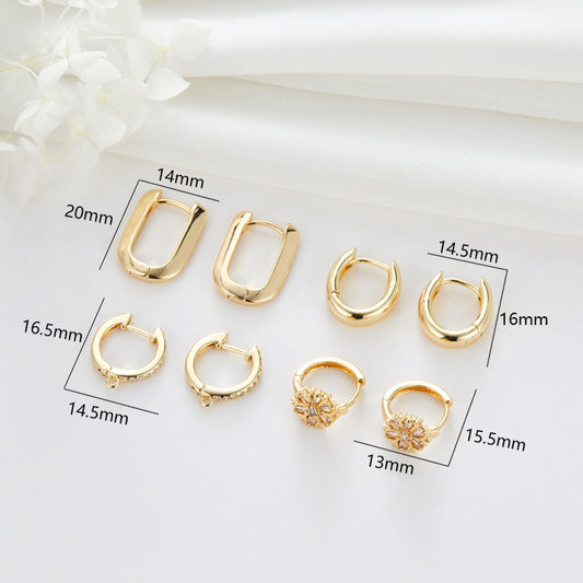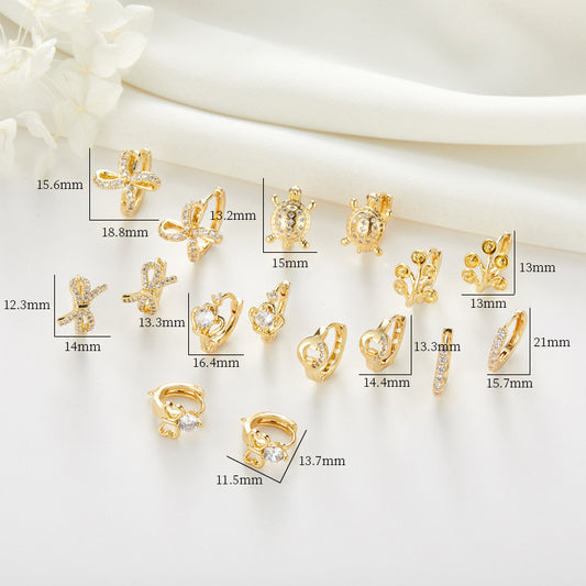 4 Crown Bowknot Turtle Circle Floral Tree Hoop Earrings Rhinestone Embellished 14K GF Earing
