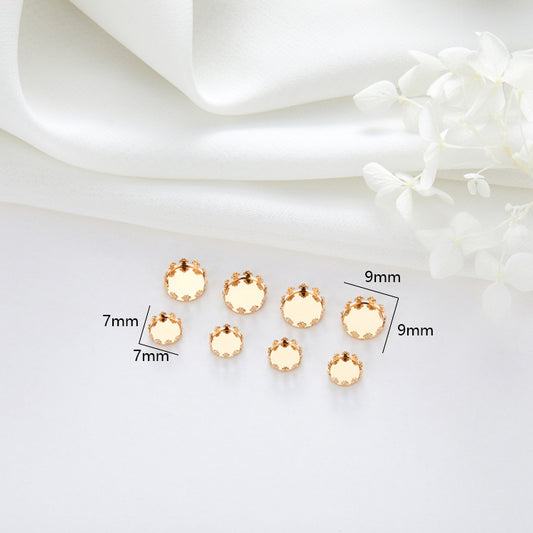 10 Crown Edge Flat Back Cabochon Blank Base 14K GF Round Gemstone Piece Setting