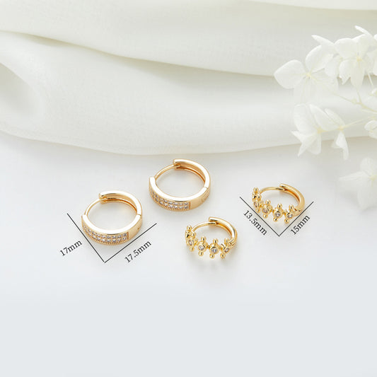 4 Floral Crown Circle Hoop Earrings Rhinestone Embellished 14K GF Earing