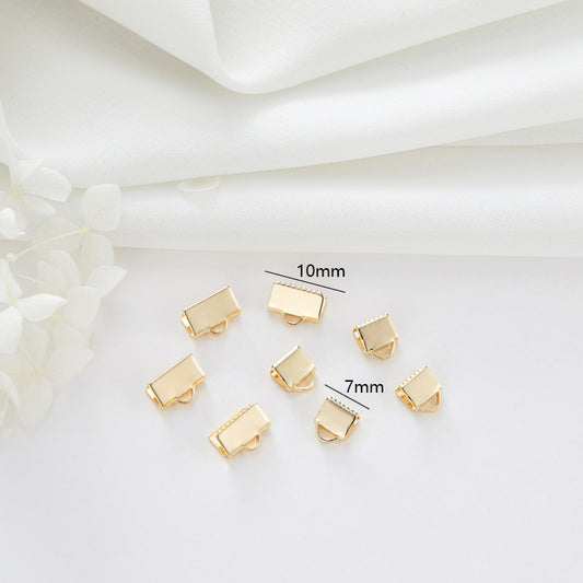 10 Ribbon Cord End Clamp Crimp Clip Clasp 14K GF