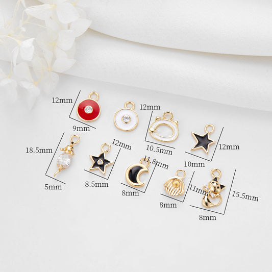 2 Baseball Glove Star Cat Mouse Moon Charm Pendant Enamel Epoxy 14K GF Rhinestone Embellished