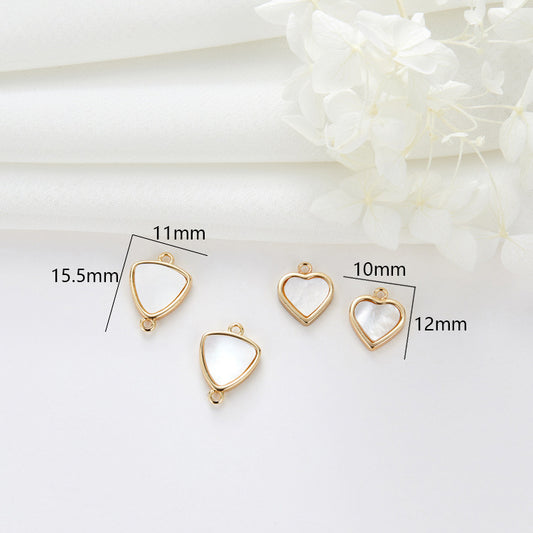2 Heart Triangle Charm Pendant 14K GF Shell Embellished