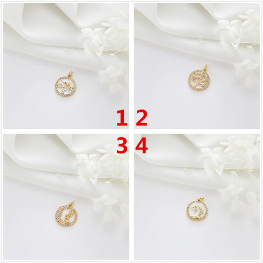 2 Tree Angel Moon Charm Pendant Rhinestone Embellished 14K GF