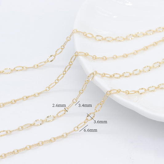 2 Meters Carving Oval Link Cable Chain 14K GF
