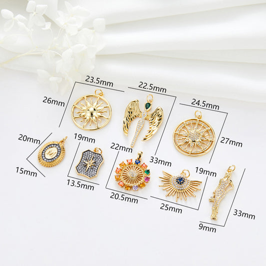 2 Floral Sun Fashion Lady Oval Star Angel Charm Pendant Rhinestone Embellished 14K GF