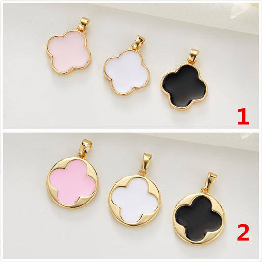 2 Cross Round Charm Pendant Enamel Epoxy 14K GF
