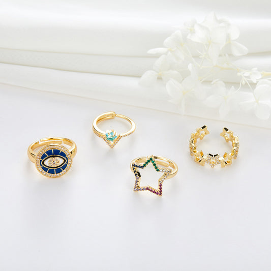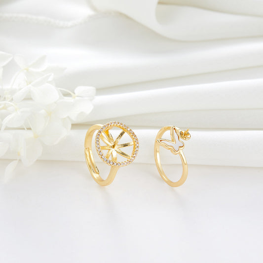 2 Open Circle Star Eye Statement Ring Rhinestone Embellished 14K GF