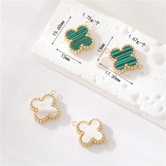2 Cross Fourleafclover Charm Pendant Shell Malachite Embellished 14K GF