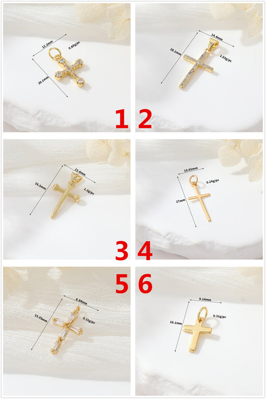 2 Cross Charm Pendant Rhinestone Embellished 14K GF