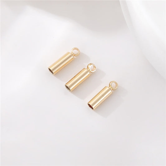 10 Tiny Round Cord End Thin Leather Clips 14K GF