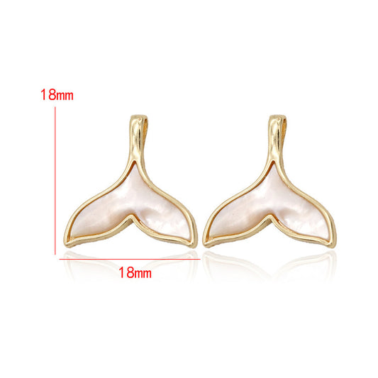 2 Mermaid Whale Tail Charm Pendant 14K GF Shell Embellished