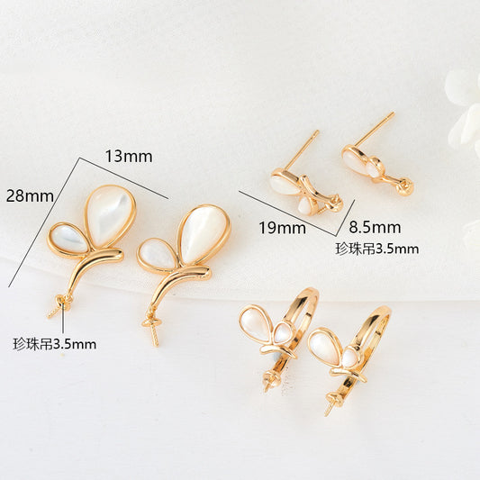 2 Shell Rhinestone Embellished Butterfly Charm Pendant Necklace Stud Earrings Statement Ring 14K GF