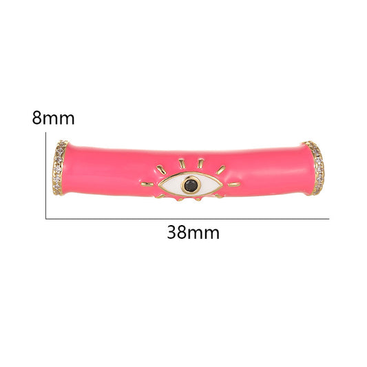 2 Ben Eye Pipe Charm Bead Enamel Epoxy Rhinestone Embellished 14K GF Beadwork Spacer