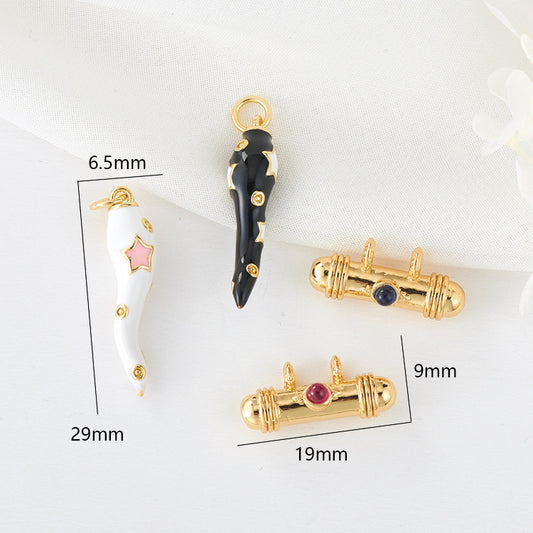 2 Italian Horn Charm Pendant Enamel Epoxy 14K GF