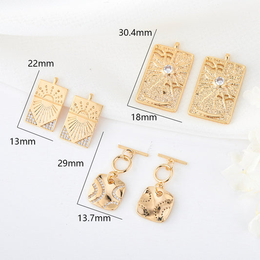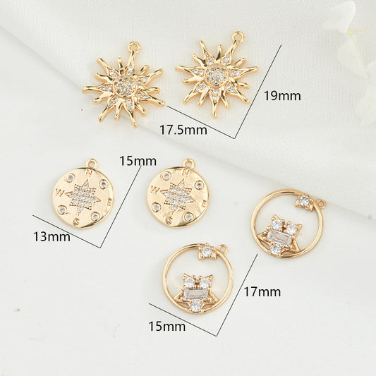 2 Tiny Sun Star Tarot Piece Charm Pendant Rhinestone Embellished 14K GF