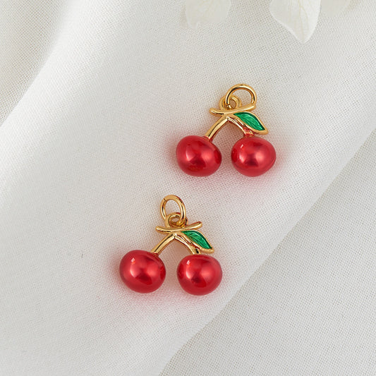 2 Cherry Grape Charm Pendant Enamel Epoxy 14K GF