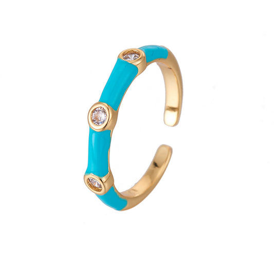 2 Open Circle Stackable Joint Statement Ring Enamel Epoxy Rhinestone Embellished 14K GF