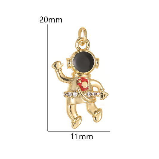 2 Astronaut Charm Pendant Rhinestone Embellished 14K GF