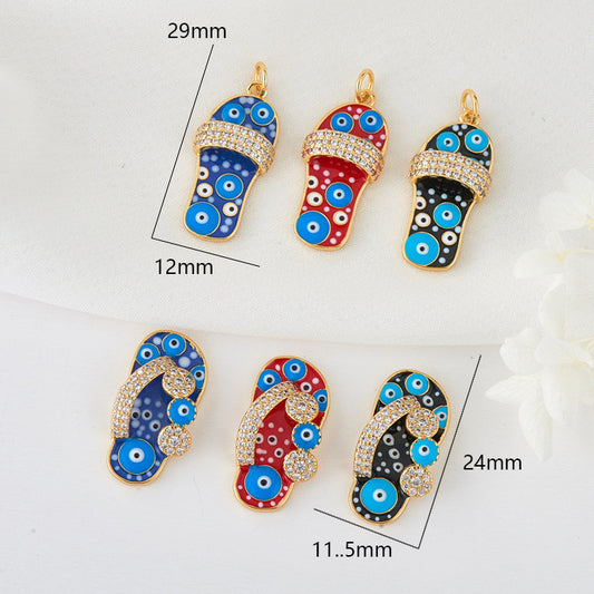 2 Slipper Charm Pendant Enamel Epoxy 14K GF Rhinestone Embellished