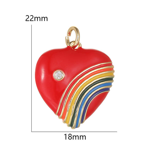2 Rainbow Heart Charm Pendant Enamel Epoxy 14K GF Rhinestone Embellished