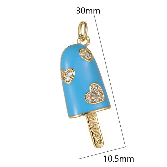 2 Ice Cream Charm Pendant Rhinestone Embellished 14K GF