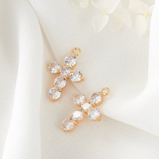 2 Cross Charm Pendant Rhinestone Embellished 14K GF