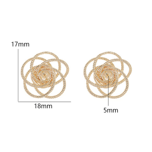 4 Hollow Rose Floral Stud Earrings 14K GF Earing Half Drilled Pearl Bead Blank