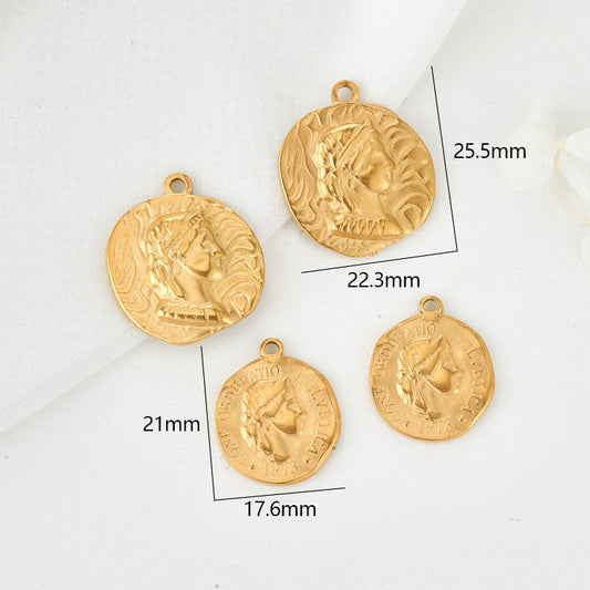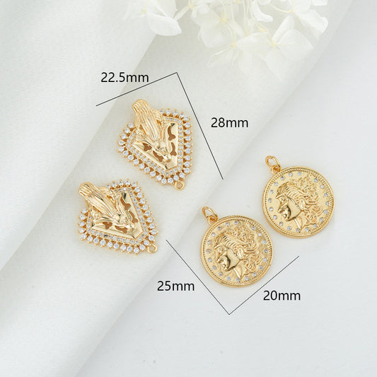 2 Round Girl Piece Charm Pendant Rhinestone Embellished 14K GF