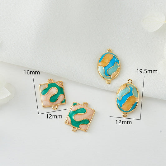2 Double Looped Camouflage Color Oval Square Charm Connector Enamel Epoxy 14K GF