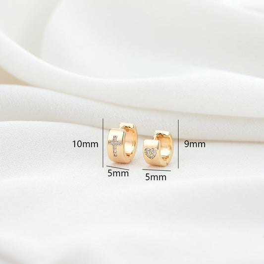 4 Heart Cross Hoop Earrings Rhinestone Embellished 14K GF Earing