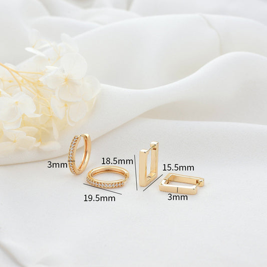 4 Square Round Circle Hoop Earrings 14K GF Earing