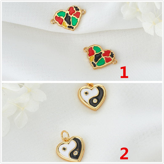 2 Double Looped Colorful Heart Tai Ji Charm Pendant 14K GF