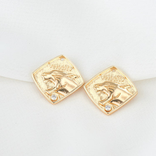 2 Leopard Charm Pendant Rhinestone Embellished 14K GF