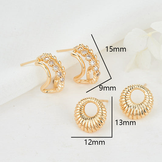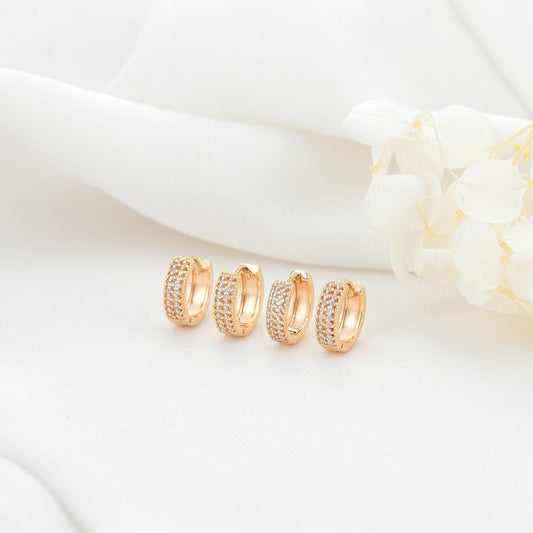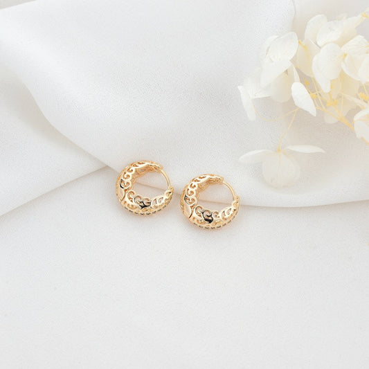 4 Hollow Circle Hoop Earring Rhinestone Embellished 14K GF Earing