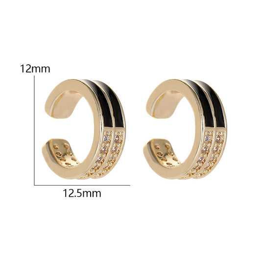 4 Round Circle Earcuff Ear Cuffs Climber No Piercing Earring Enamel Epoxy Rhinestone Embellished 14K GF Earing