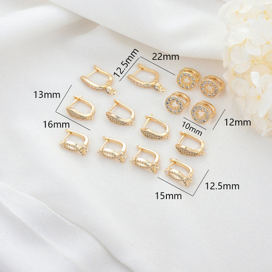 4 Floral Star Round Hoop Earrings with Loop Rhinestone Embellished 14K GF Earing