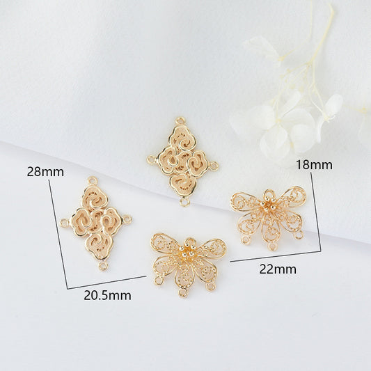 2 Multi Looped Hollow Butterfly Cloud Charm Pendant 14K GF