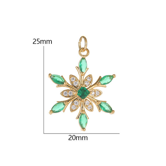 2 Snowflake Floral Charm Pendant Rhinestone Embellished 14K GF