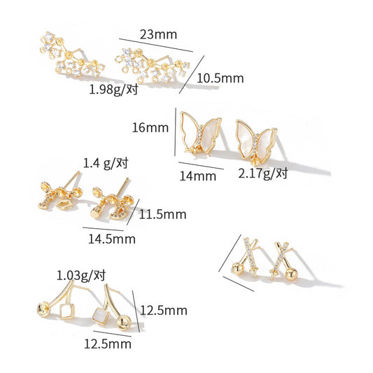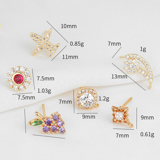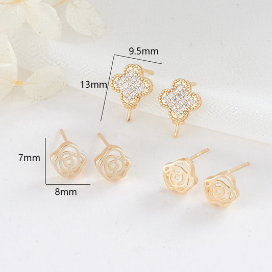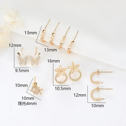 4 Floral Circle Butterfly Star Stud Earrings Rhinestone Embellished 14K GF Earing Half Drilled Pearl Bead Blank