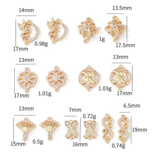 2 Double Looped Floral Angel Fan Celtic Knot Infinity Charm Connector Rhinestone Embellished 14K GF