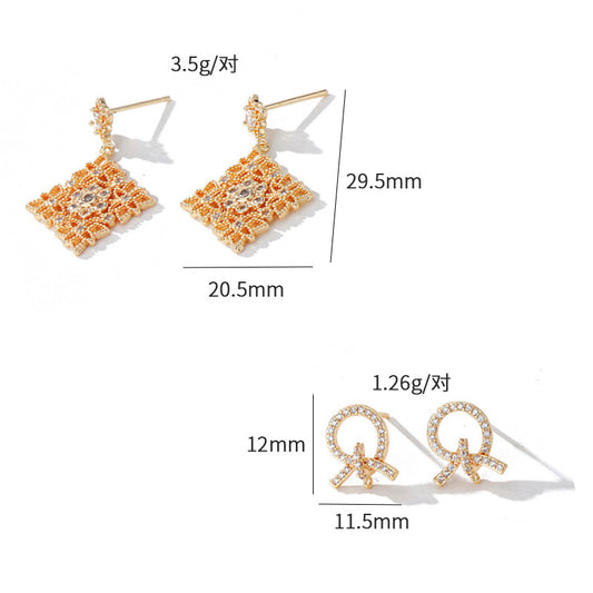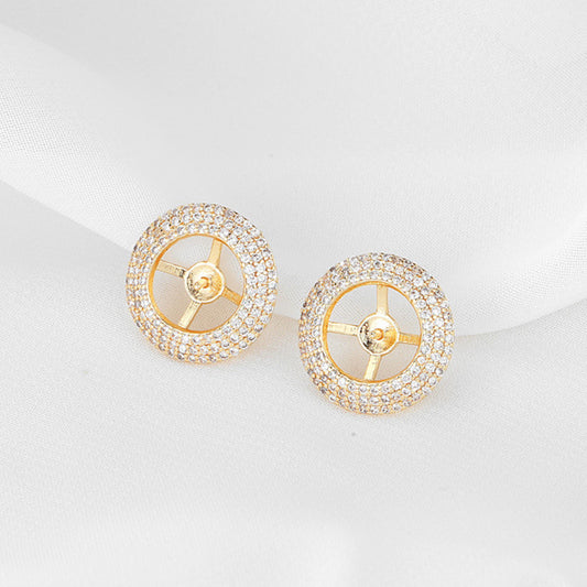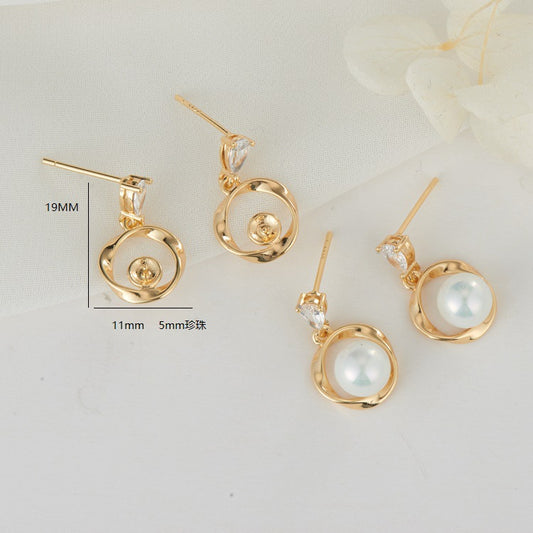 4 Twined Circle Stud Earrings Rhinestone Embellished 14K GF Earing Half Drilled Pearl Bead Blank