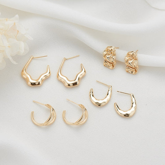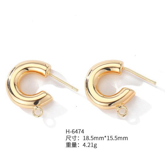 4 Glossy Semi Circle Chunky Stud Earrings with Loop 14K GF Earing