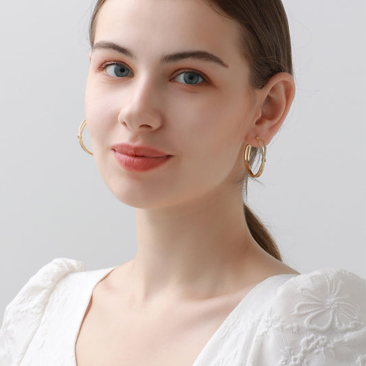 4 Chunky Hollow Circle Hoop Earring 14K GF Earing