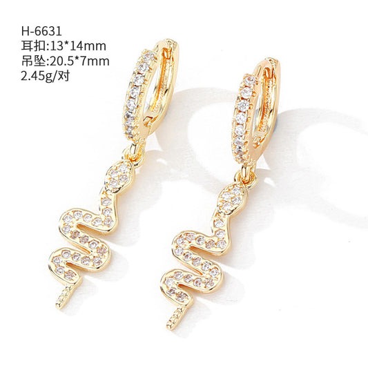 4 Snake Charm Hoop Earrings Rhinestone Embellished 14K GF Earing