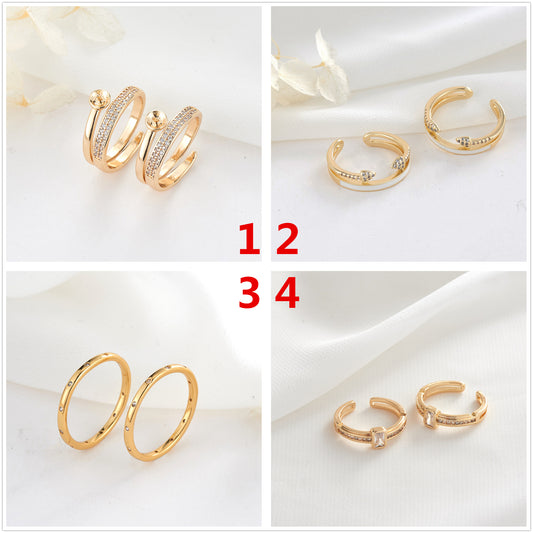 2 Stackable Open Circle Statement Ring Rhinestone Embellished 14K GF