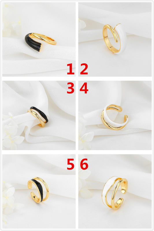 2 Open Circle Black White Statement Ring Enamel Epoxy 14K GF