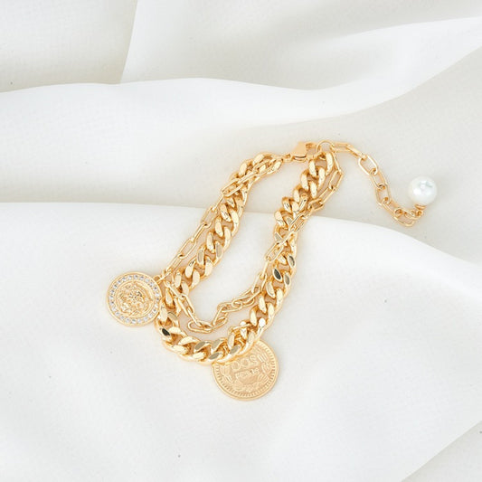 2 Chunky Oval Link Cable Chain Bracelet with Extender 14K GF Bangle