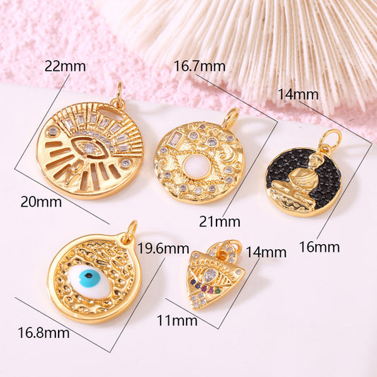 2 Round Triangle Eye Buddha Coin Charm Pendant Rhinestone Embellished 14K GF