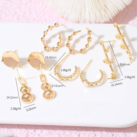 4 Stud Earrings Rhinestone Embellished 14K GF Earing Half Drilled Pearl Bead Blank