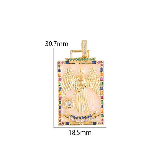 2 Rectangle Tarot Card Charm Pendant Enamel Epoxy 14K GF Rhinestone Embellished